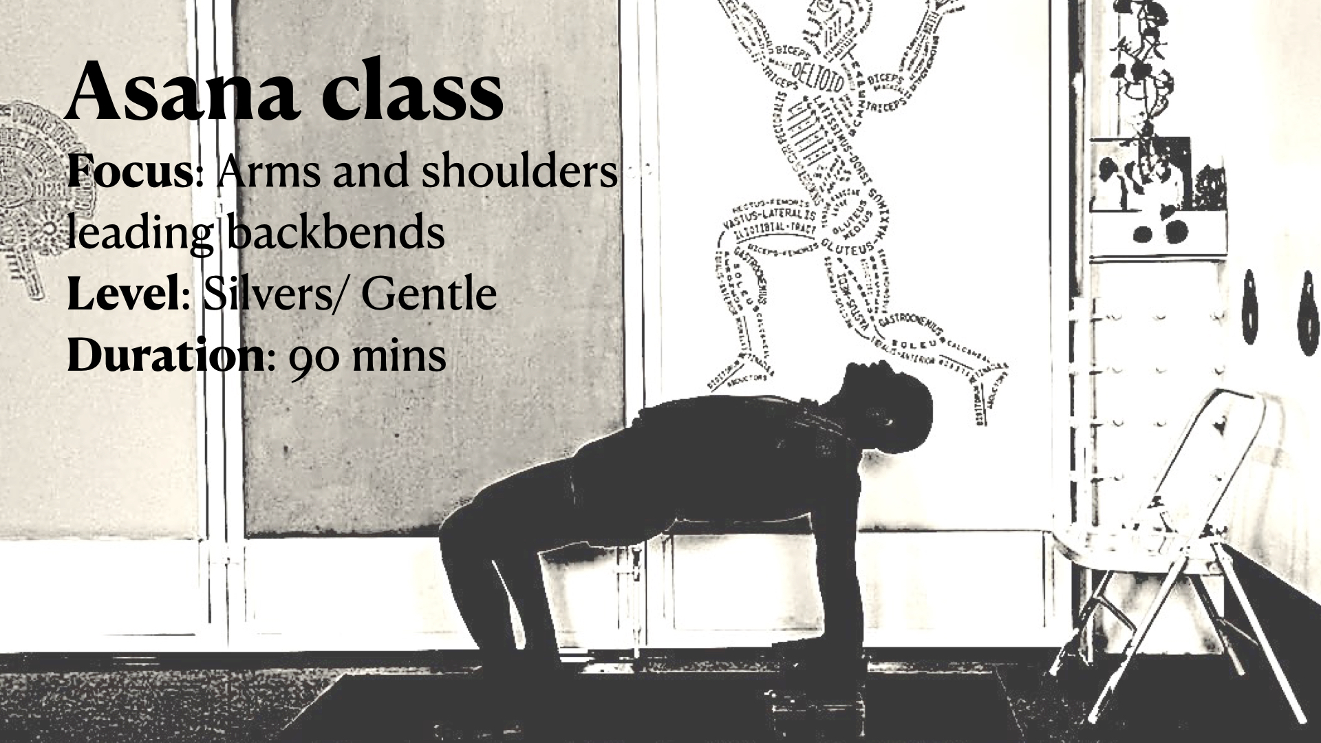 This session prepares the arms and shoulder leading to the back arches Purvottanasana and Ustrasana, with options for doing the Asana with supports.