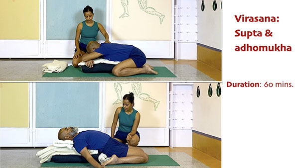 In this session, we look at forward extension from Virasana to Adhomukha virasana, and a supine extension to Supta virasana.