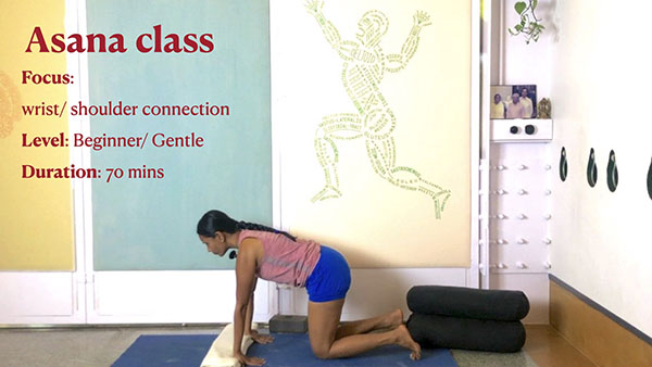 This session is mostly drills to bring relief to our abused wrists/elbows/shoulders, from over-use of electronic gadgets. These actions are good by themselves, and also good preparation for asanas where wrist/ elbow/shoulder strength is called for.   Can be attempted by all levels.