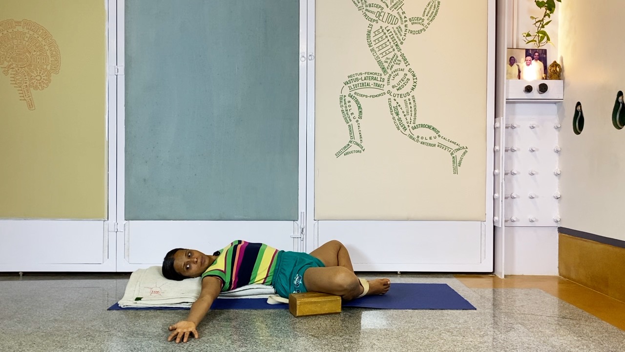 Tagwords: 50mins, women, womens health, urinary health, reproductive health, supta baddhakonasana, supine, thigh external rotation, thigh, hips, hip joint, hip mobility