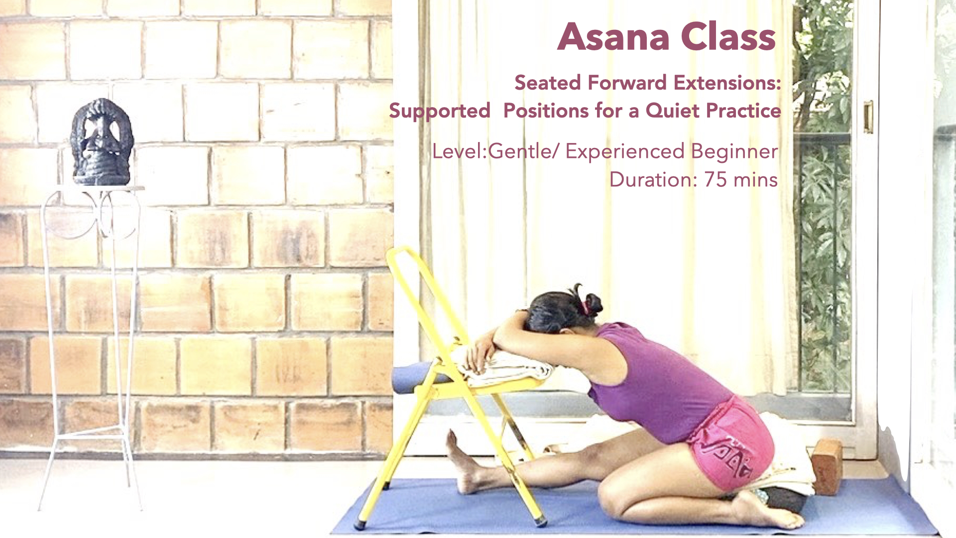 Props needed: blankets, belt, blocks,1 chair, bolster, access to a wall