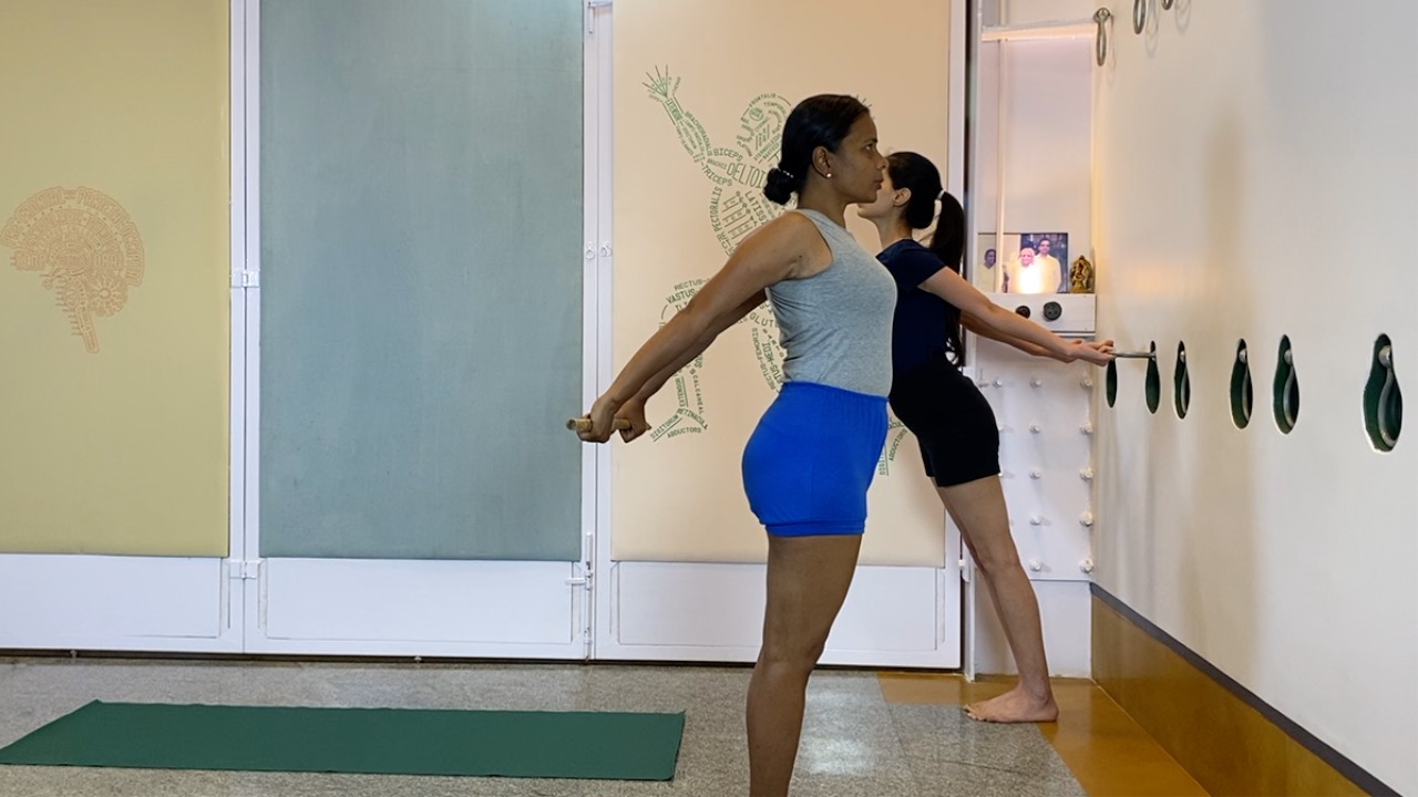 It is not uncommon to feel the strain in the neck while practicing back arches. This is not unexpected since the head and the neck are thrown back in many back arches.  The musculature around our neck is relatively delicate, and combined with the weight of the skull, this often becomes a pain-point.  While we may have to put up with some discomfort in the beginning, we can use this discomfort as a diagnostic tool to understand and adjust, and strengthen.  There are many parts of the body that can and should be addressed to relieve this discomfort.  This session is fairly simple – without using too many props, it explores how the cervical area and the skull can be held in back arches to avoid straining the neck. We work up to Salabhasana and Ustrasana in this session.