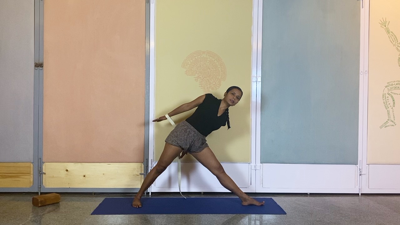 Often the action of moving the shoulders back causes discomfort in the upper back/ neck area to beginner level students. This session focusses on keeping the upper back broad while maintaining active shoulders and arms.