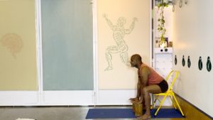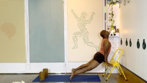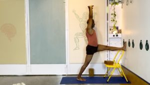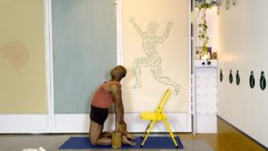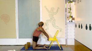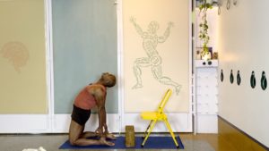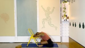 Props needed: Bolster, blankets, a couple of yoga blocks, a sturdy chair, a yoga strap