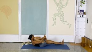 Deep hip flexions and knee flexions as preparation for padmasana.