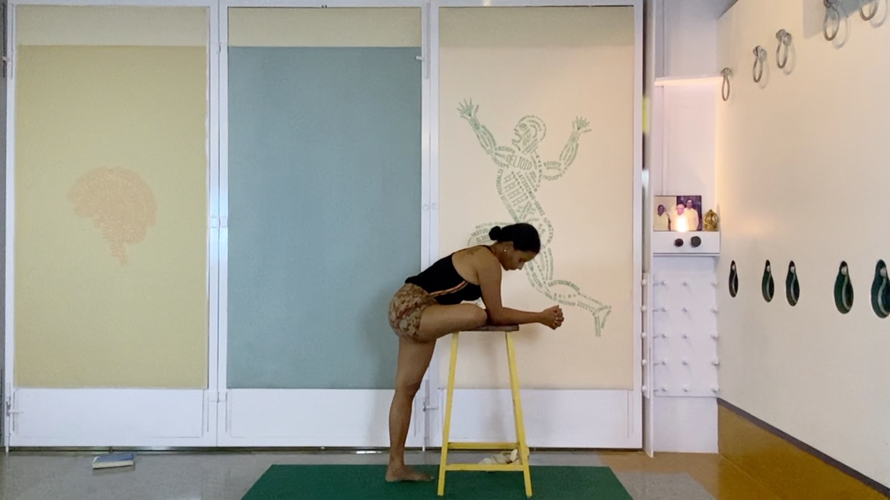 This session has strong knee flexion – this action is contraindicated for people with knee injuries.