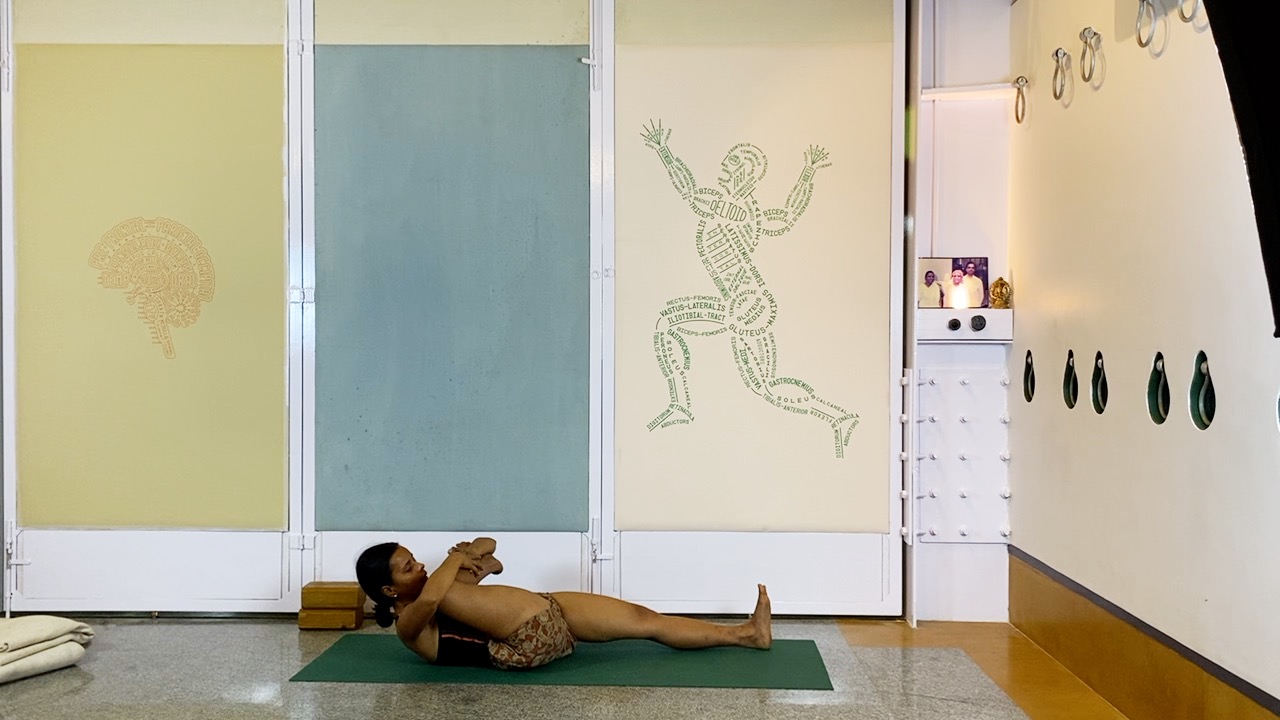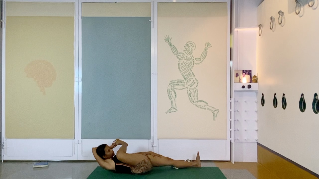 Padmasana Preparation, Akunchan Kriya in Supta Padangusthasana