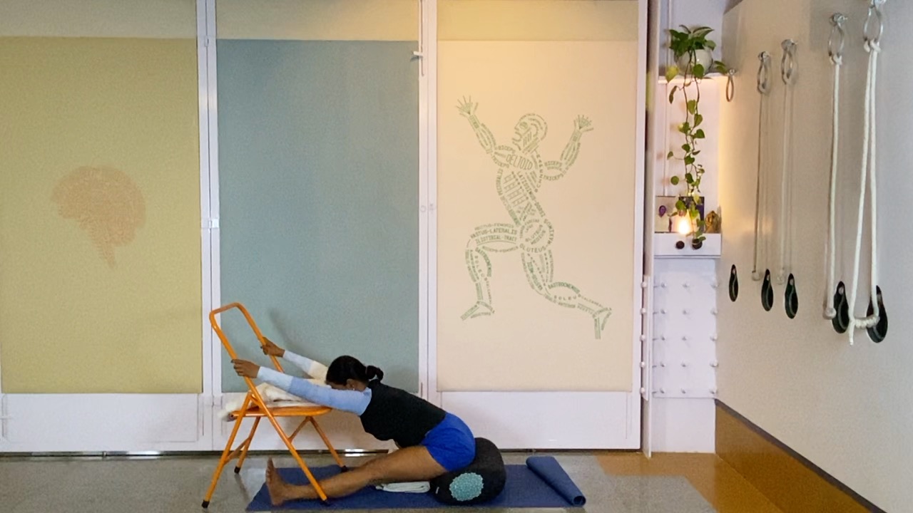 The back body often shrinks in forward extensions. For many, the lumbar/lower back area might extend, but seldom does the upper and middle back get activated. In this session we start with mobilising the entire back body, integrating the action of the breath, and then going towards seated forward extensions. Also includes some wrist mobilisation work.