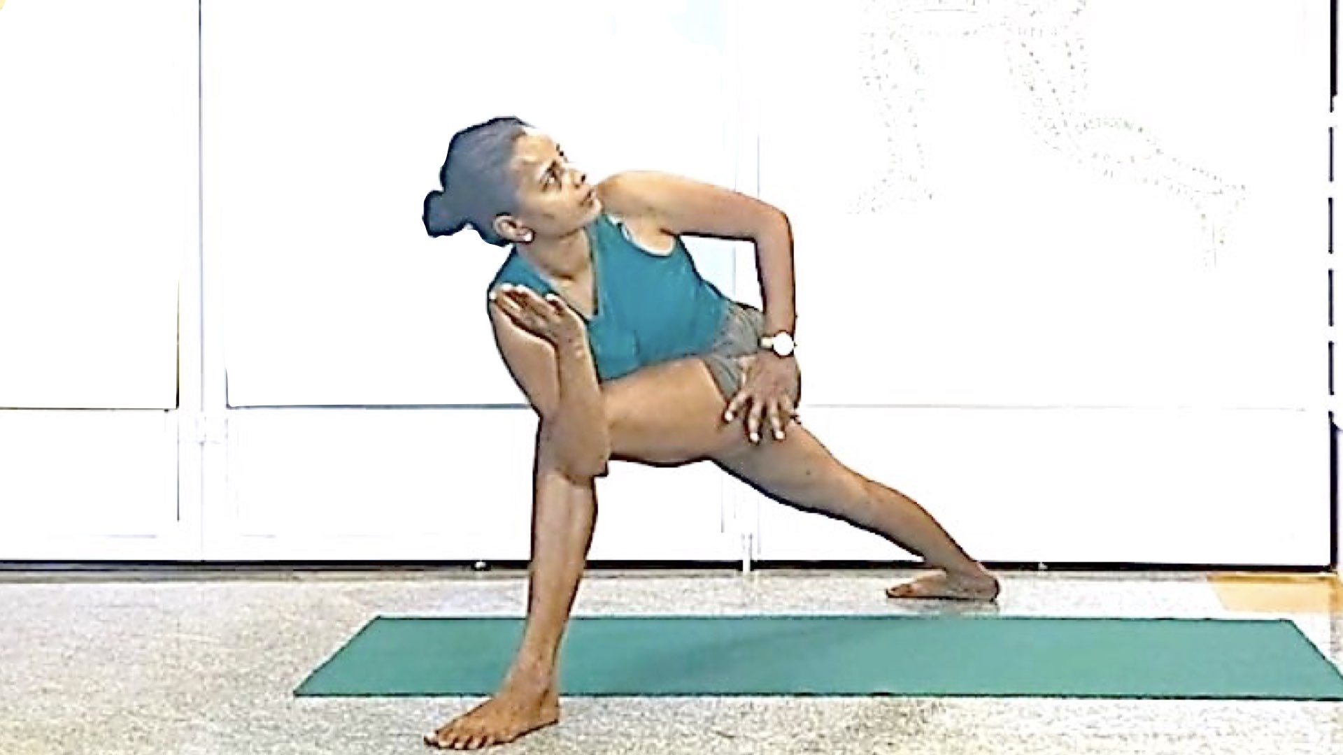 Virabhadrasana I is a foundational standing asana. When its first taught, it strengthens the legs, and extends the arms and shoulders.