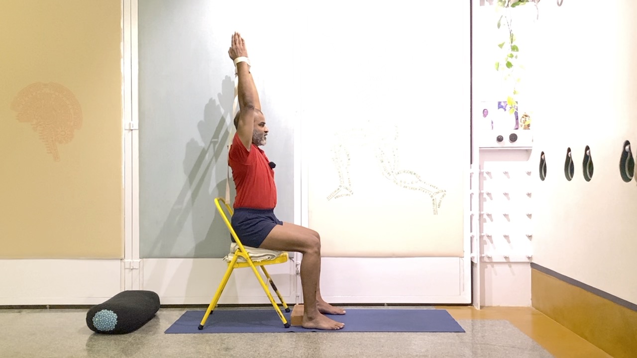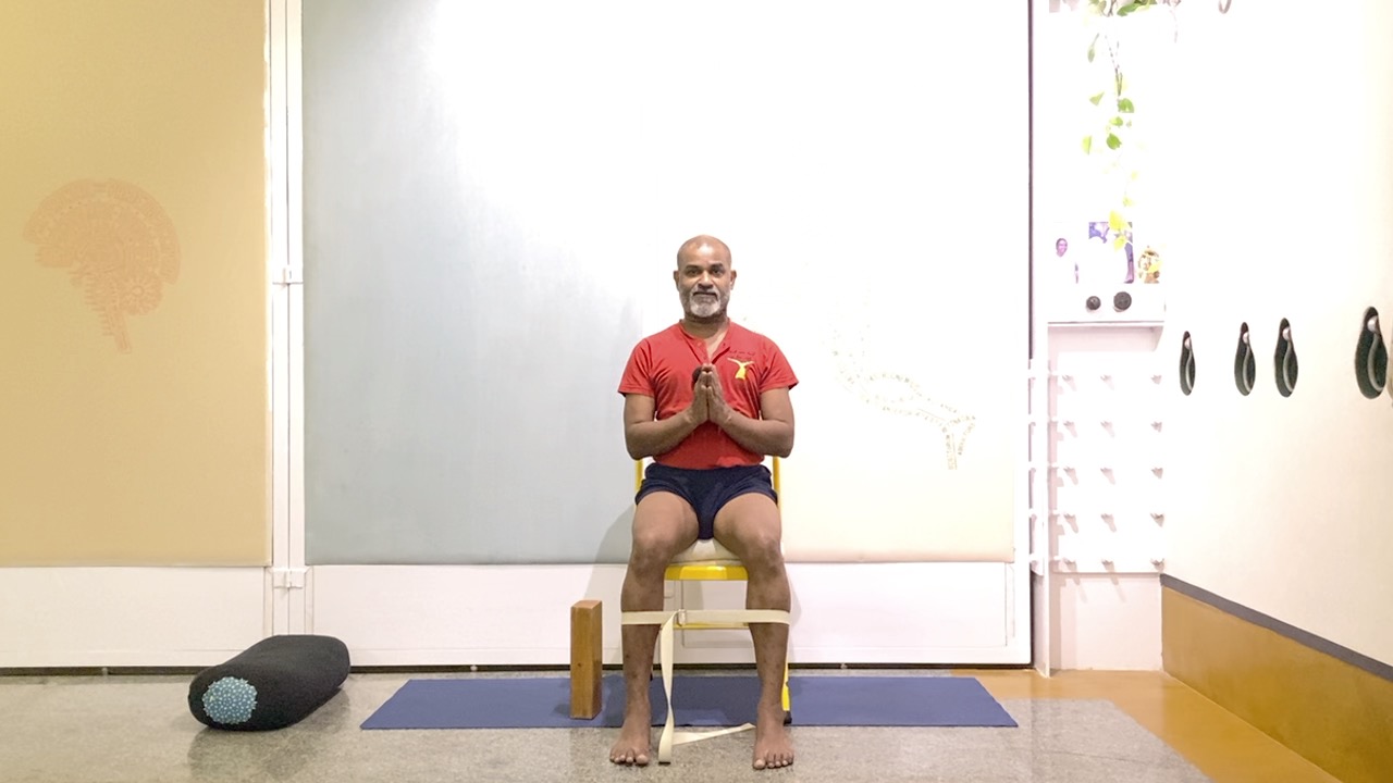 Props required: a chair to sit on, block, a strap