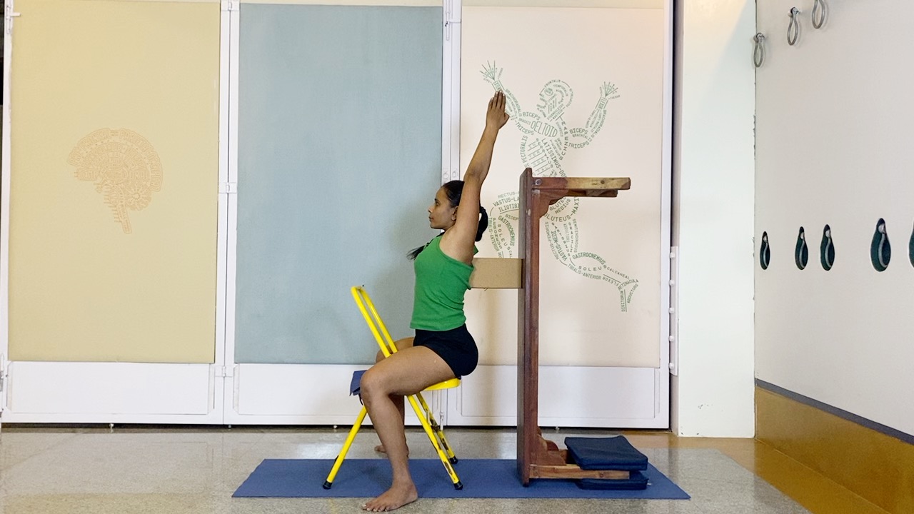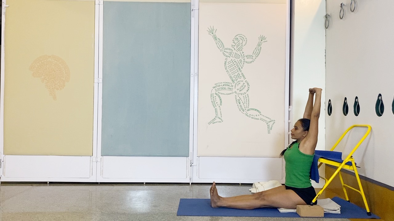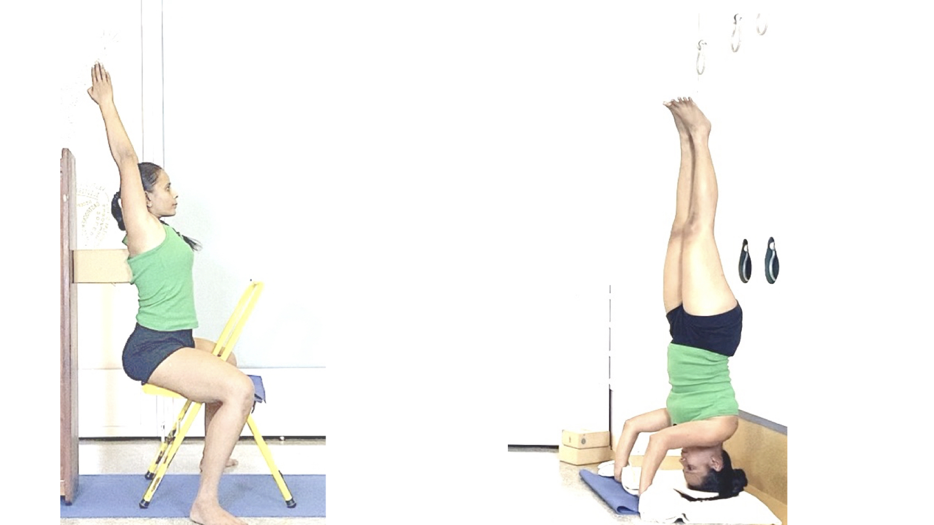 Props needed: an sturdy chair, a couple of blocks, shoulder support for sarvangasana (stack of blankets). access to a wall