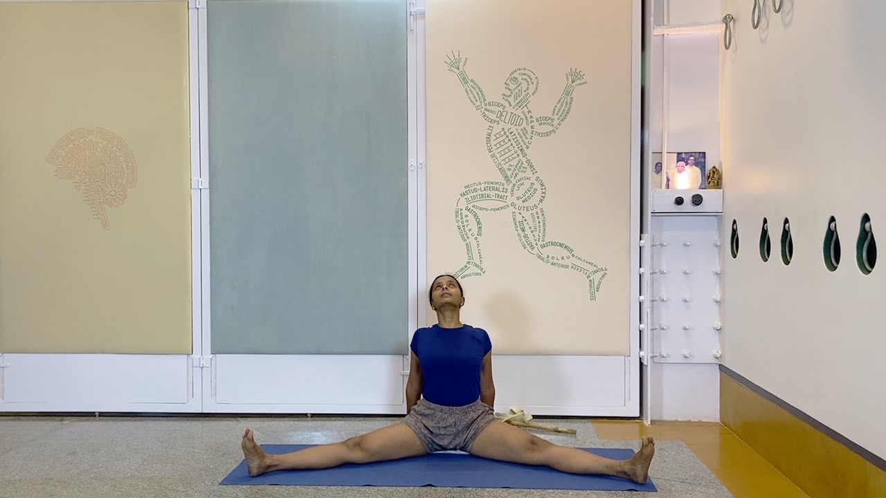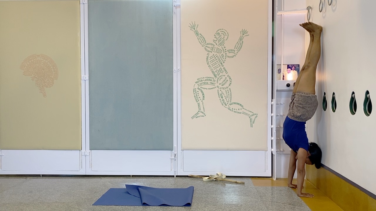This session explores explores how the cervical area and the skull can be held in back arches, using ahdomukha vrksasana (handstand) as a preparatory position.