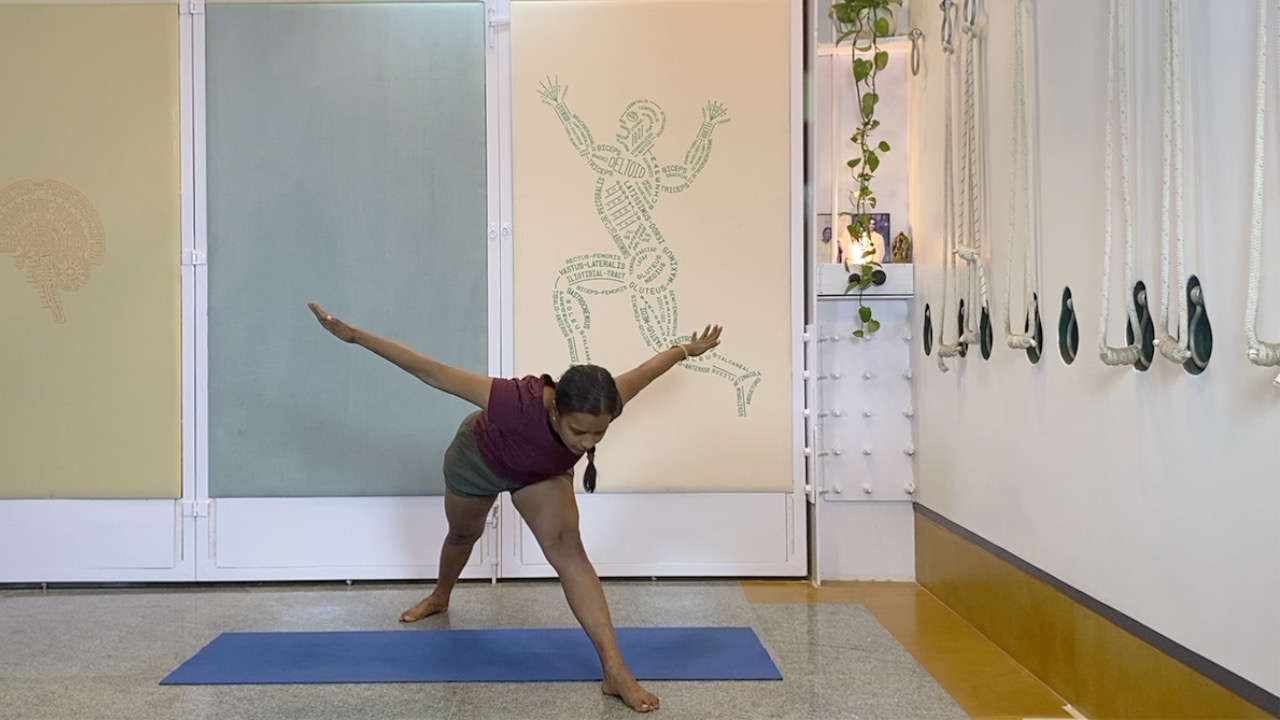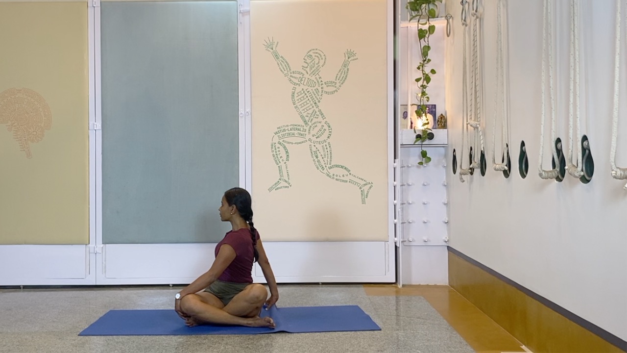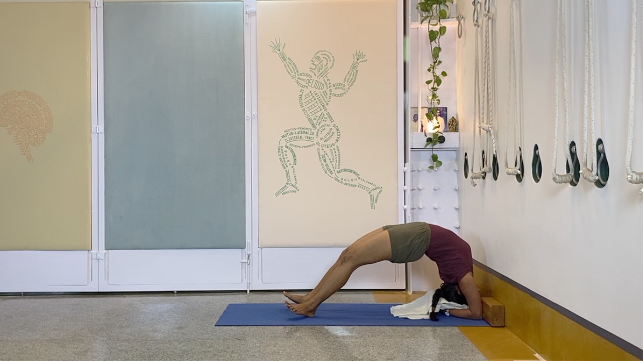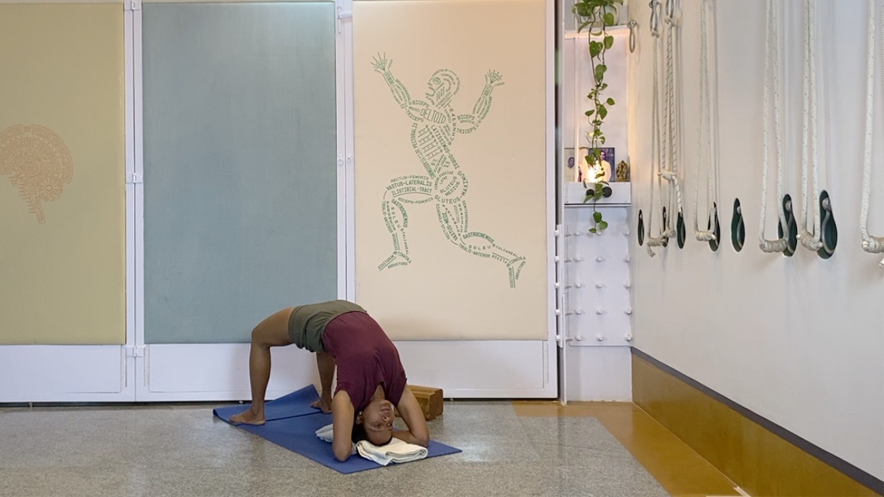 Props needed: yoga chair, yoga strap, blocks, access to a wall