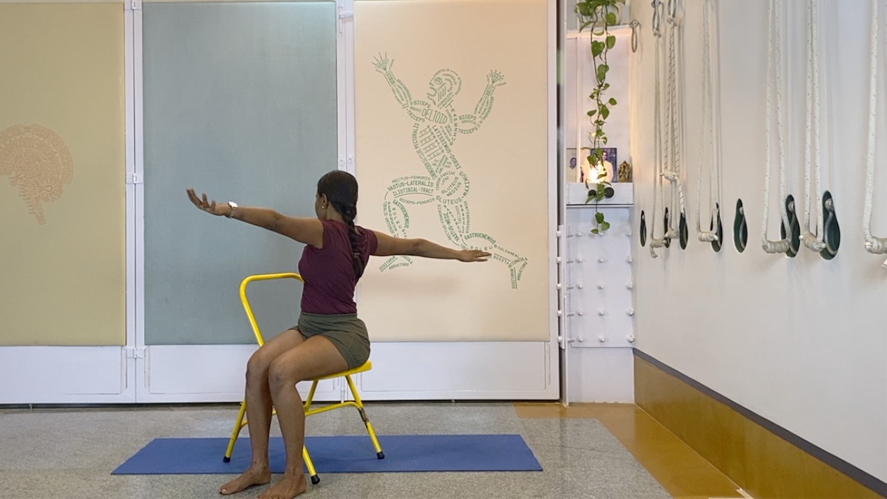 Exploring the full range of shoulder movements, delving deeper into role of arms in backward extensions. This session leads up to vipraita dandasana - both supported on a chair, and done independently