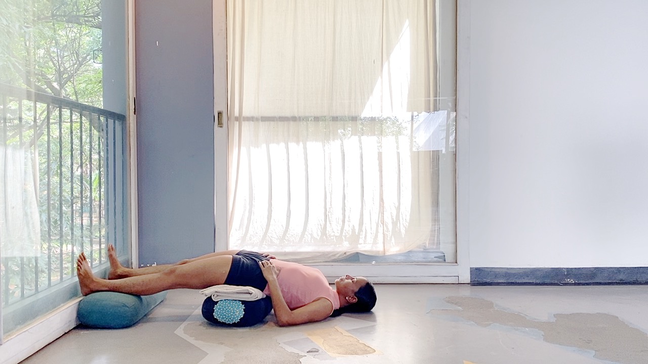- If you are an asana practitioner but not used to working with props, please be especially attentive to the prop arrangements – a significant part of the efficacy of this practice depends on supporting the body correctly