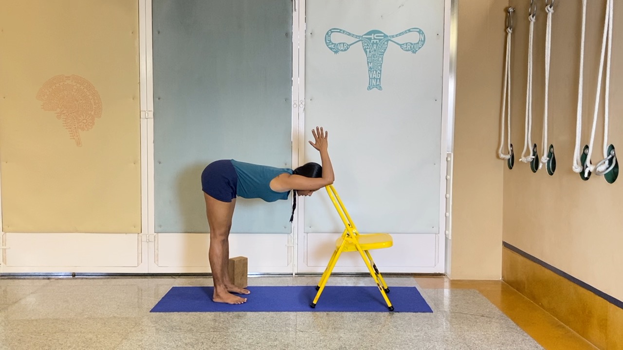 Props needed: a yoga strap or long piece of any cloth, a yoga block, any chair, access to a wall, 2-3 blankets/ cushions for resting at the end of the session.