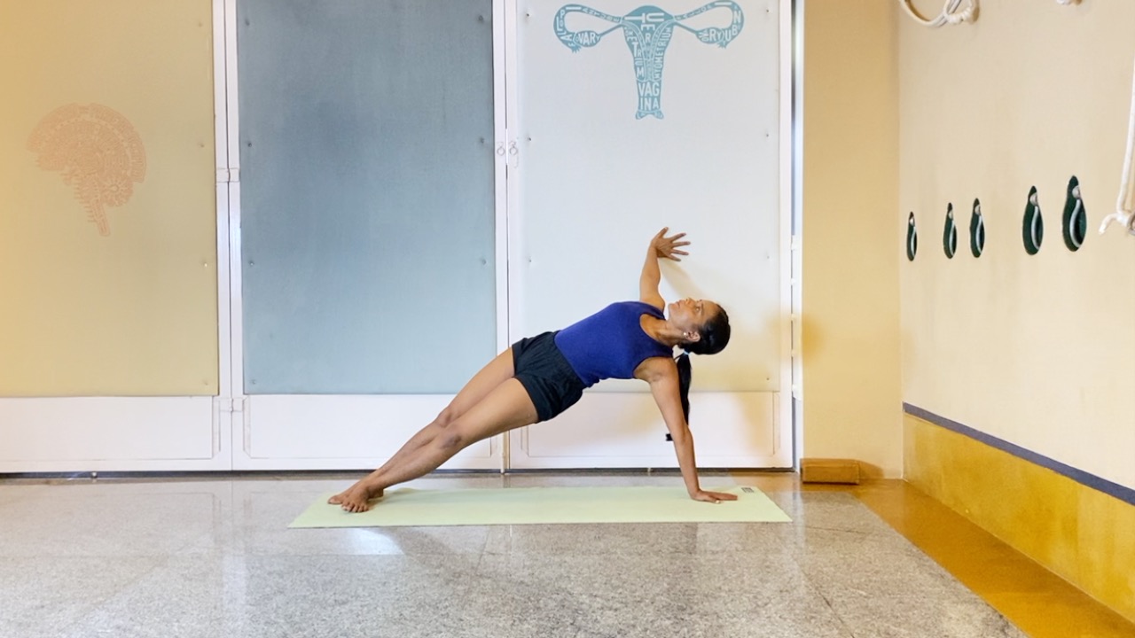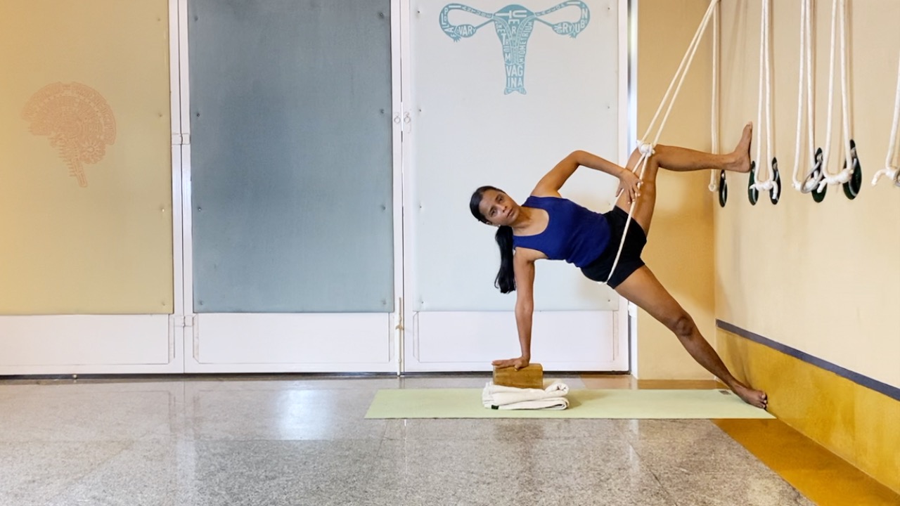Use of props makes many asanas – especially intermediate and advanced level asanas – accessible to practitioners who might otherwise not be able to approach these asanas at all. They also make available the therapeutic benefits of many of these asanas available to those who are most in need of them. However, in many cases, an asana done with the aid of props, feels quite different from an independently done asana. Also, in many cases, practicing an asana with the aid of props does not automatically develop the skills for practicing the independent asana. In this second part of vasisthasana session, we prepare the hips and legs and attempt the final un-assisted version of vasisthasana